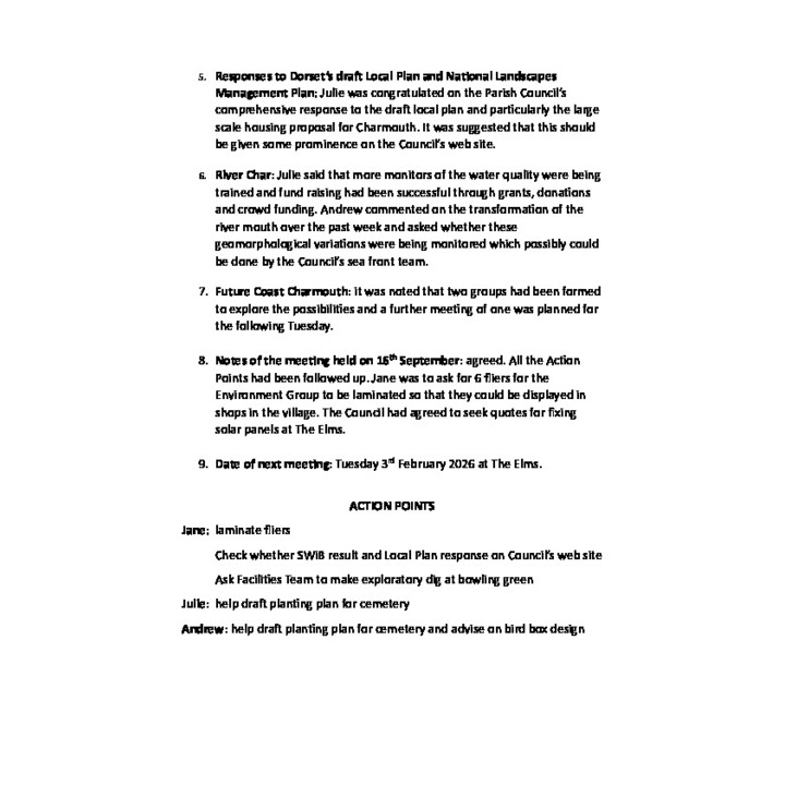 Charmouth in Bloom Meeting notes Oct 2022