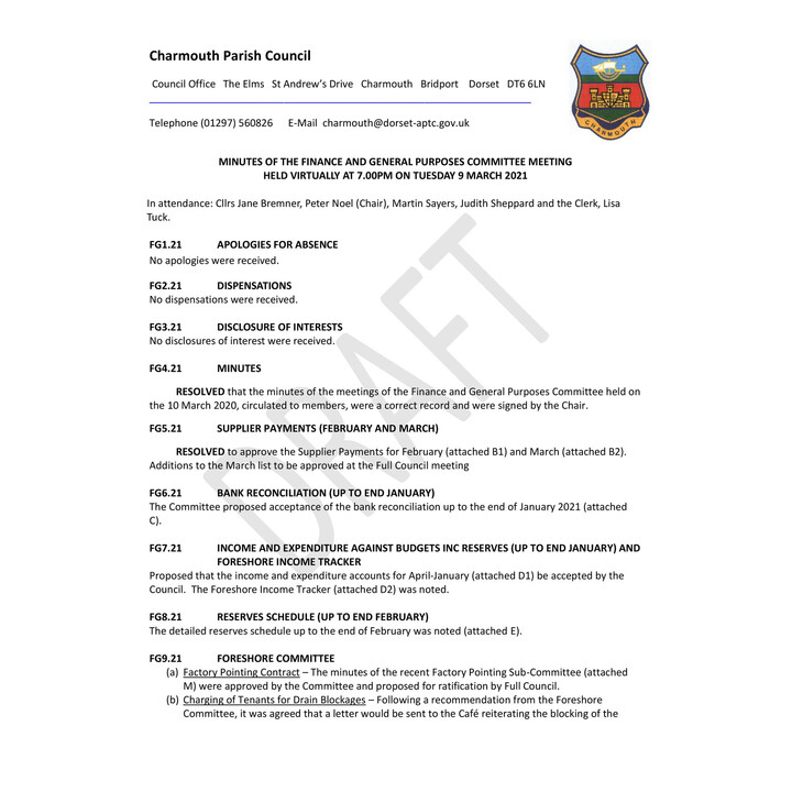 March 2021 - F&GP Committee Minutes