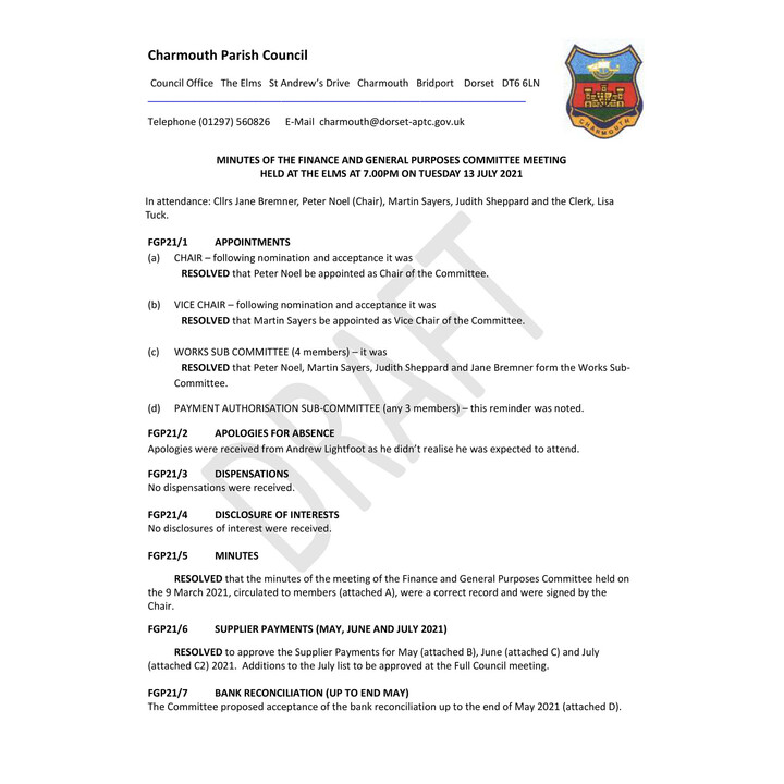 July 2021 - F&GP Committee Minutes