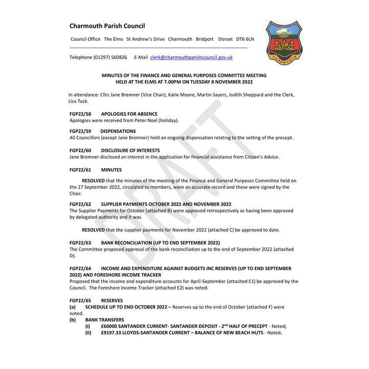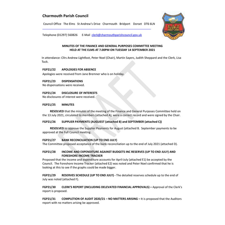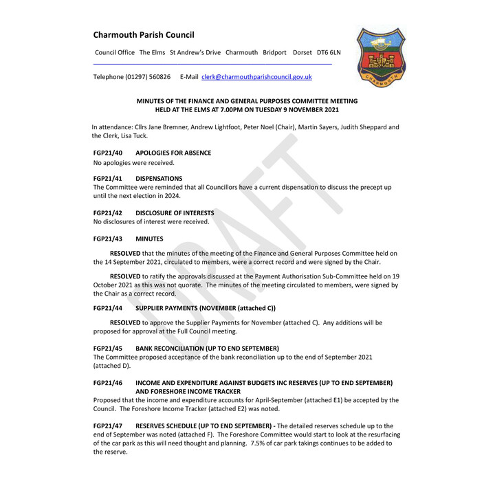 November 2021 - F&GP Cttee Minutes