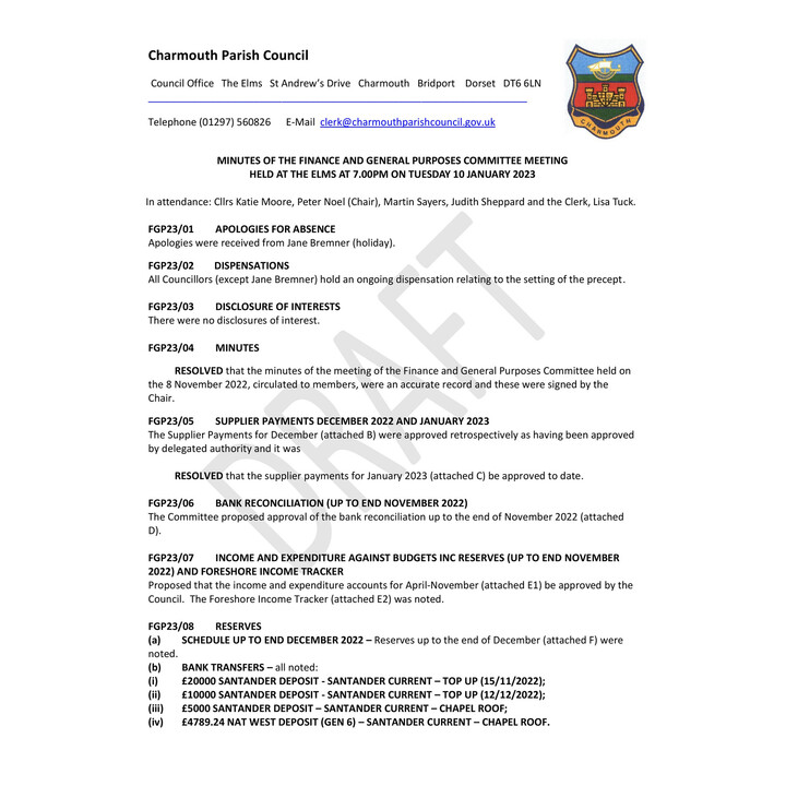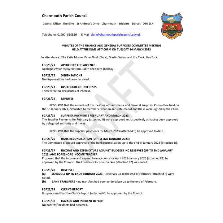 March 2025 - F&GP Cttee Minutes