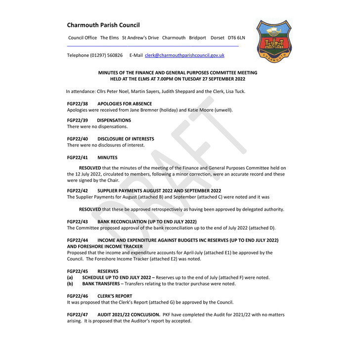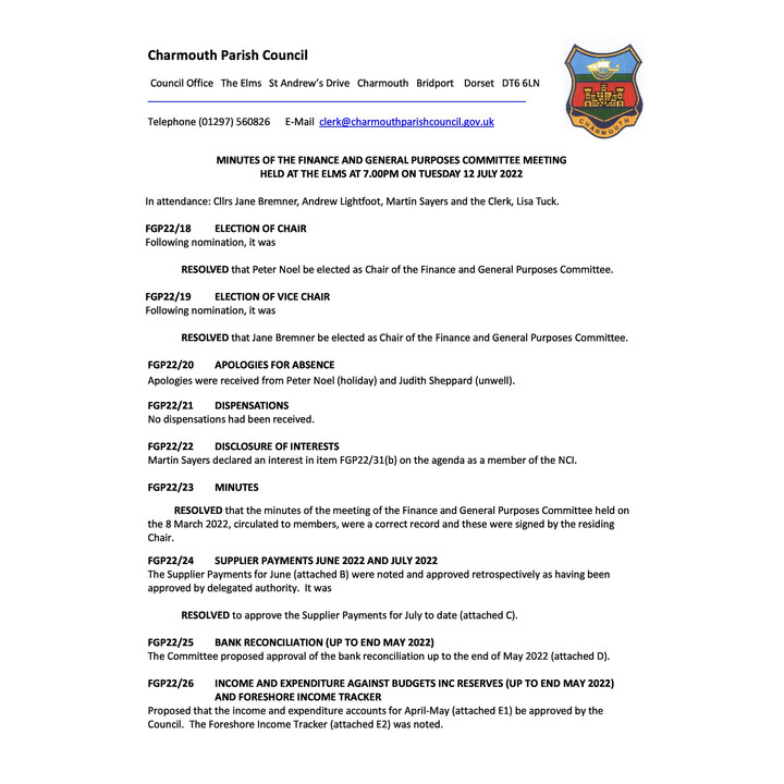 July 2022 - F&GP Cttee Minutes