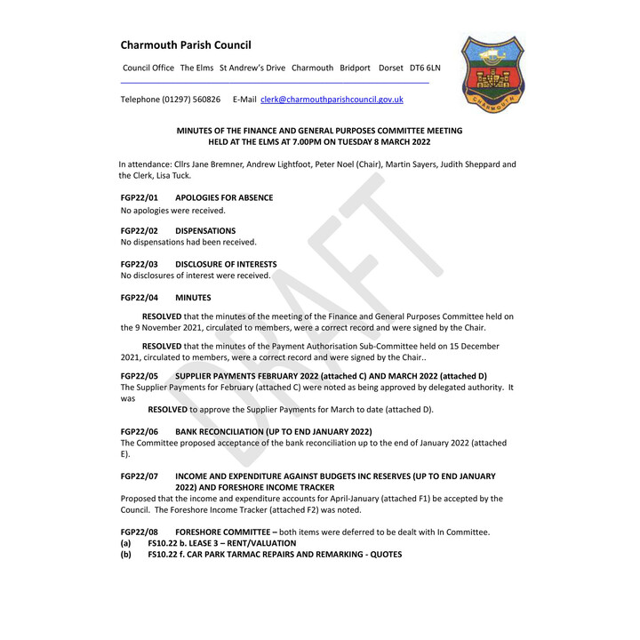 March 2022 - F&GP Committee