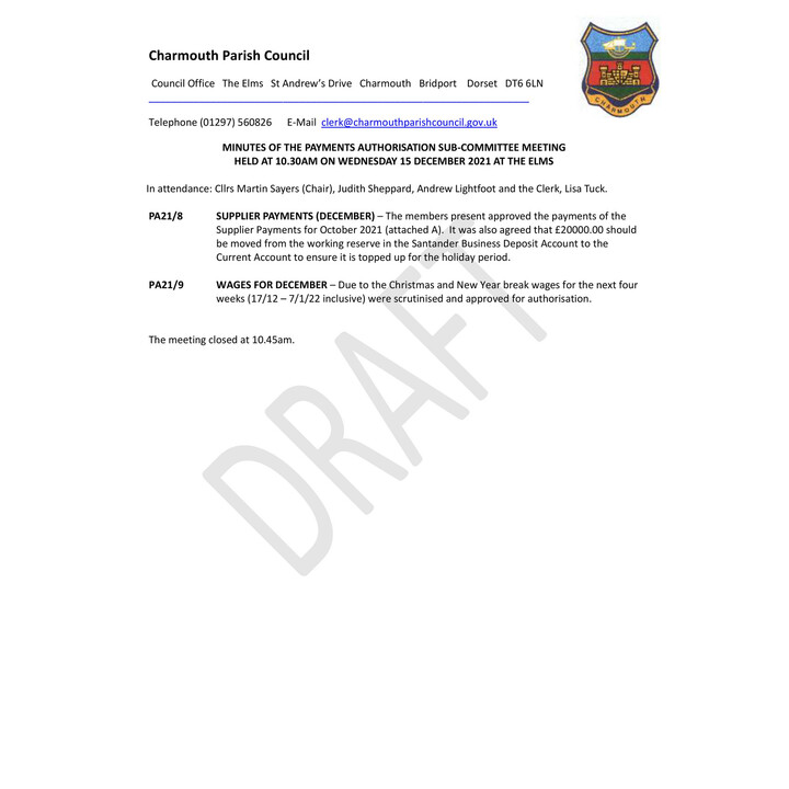 December 2021 - Payment Authorisation Sub Committee