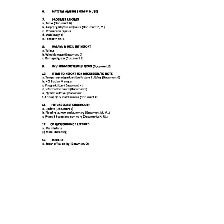 October 2023, Foreshore Minutes
