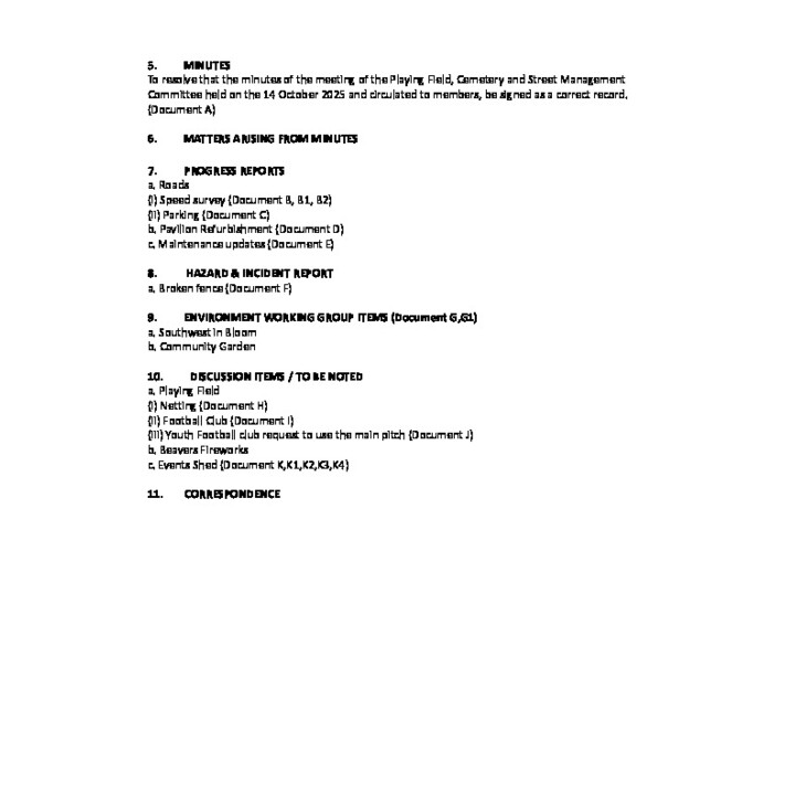 October 2025, Playing Field, Cemetery and Street Management minutes